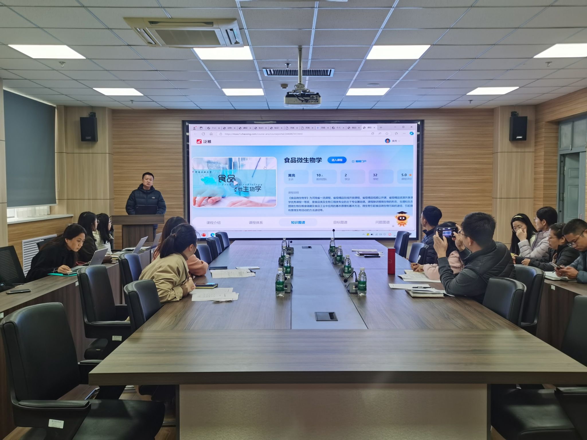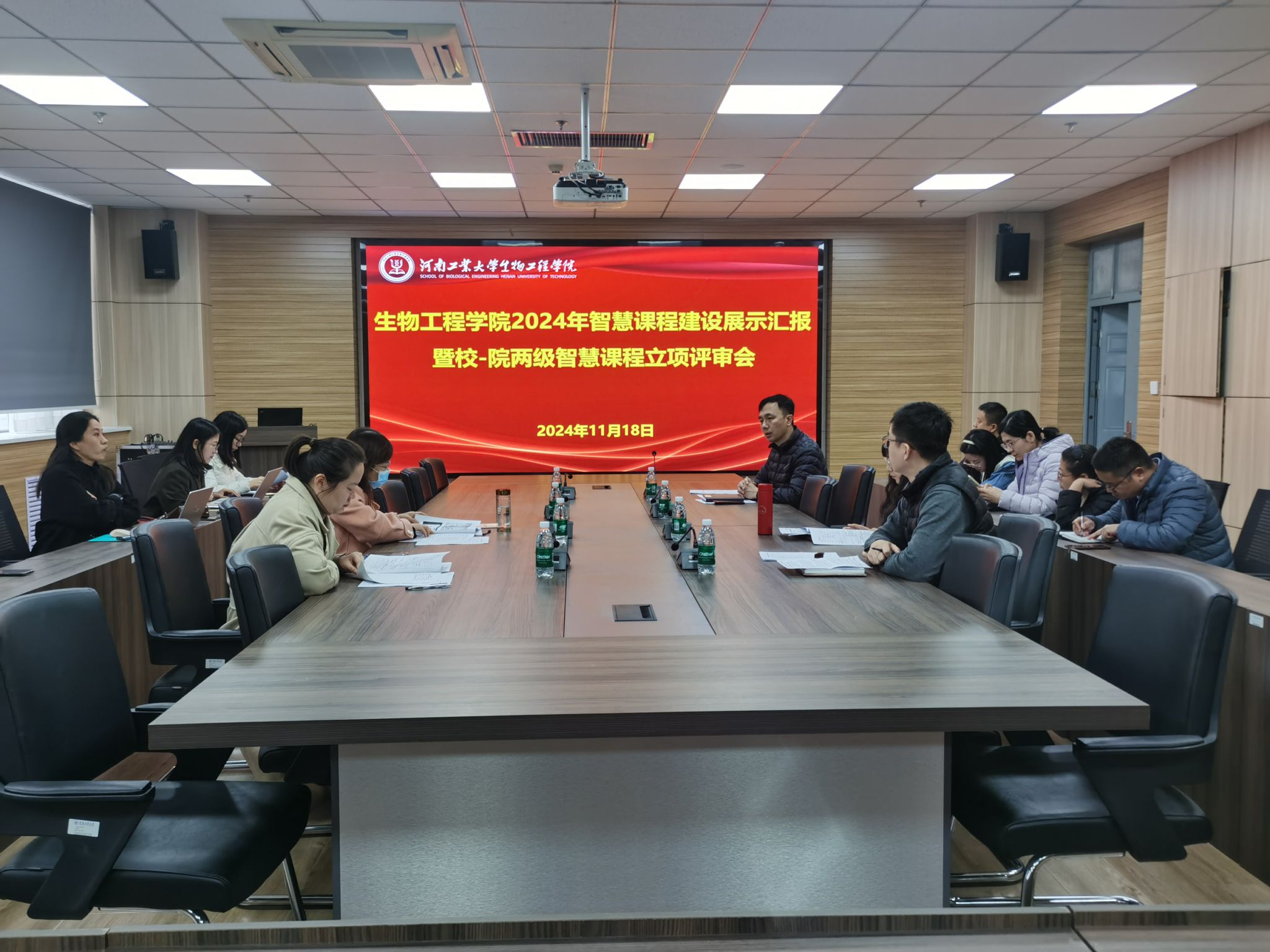 在惟德楼1313会议室召开2024年智慧课程建设展示汇报暨校-院两级智慧课程立项评审工作。各个专业的专业负责人担任评审专家,亚洲av全体教师参与观摩学习。汇报评审会议由教学副院长崔柳青主持。