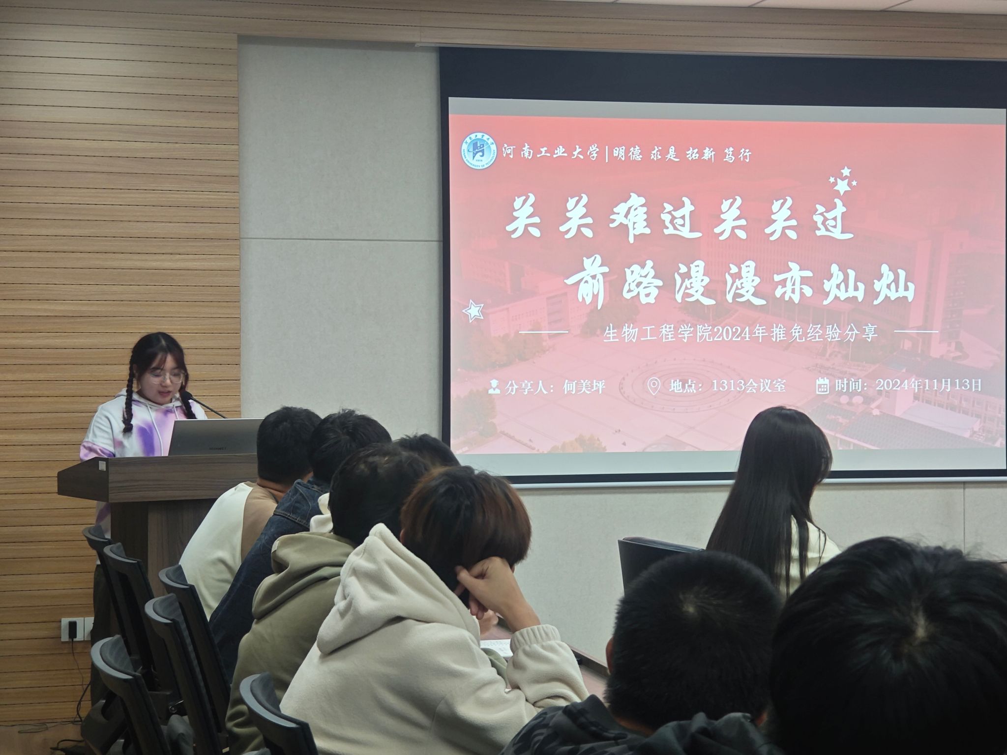 会议伊始,杨雨薇以奋斗为切入点,鼓励同学们怀抱梦想、脚踏实地、增长才干、肯吃苦、勤耕耘,在青春赛道上砥砺奋进,勇做新时代追梦人。动物科学2101班何美坪以“关关难过关关过,前路漫漫亦灿灿”为主题,围绕保研要求、夏令营、预推免以及保研相关准备展开介绍,鼓励同学们保持积极向上的心态,披荆斩棘,稳健前行。生物工程2102班王壮以“等风来,不如追风去!”为主题,从自身经历分享近年来参加竞赛的心得与体会,鼓励大家勇于挑战自我,在挑战中成长、在合作中进步、在创新中突破。饲料工程2401班吕春宏以“强军有我,强军有你”为题,并结合自己军旅生涯的成长经历,号召大家用实际行动为国家的繁荣富强和人民的幸福安康贡献青春力量。