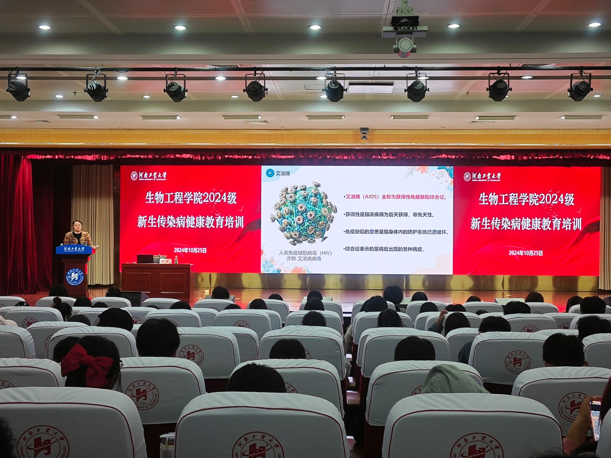 会上,薛姣结合现今传染病流行态势,以生动的案例和详实的数据,向与会同学介绍传染病的定义、分类和传播途径,重点就“超级癌症”艾滋病和结核病两种影响公共卫生的传染病进行了讲解。她讲到,要做好传染病的防治要做到以下三点,一是要养成良好的个人卫生习惯,为健康筑起第一道防线;二是要树立正确的恋爱观和价值观,在与人交往过程中做好自我保护;三是要加强体育锻炼,增强自身免疫力,锻造坚不可摧的健康堡垒。