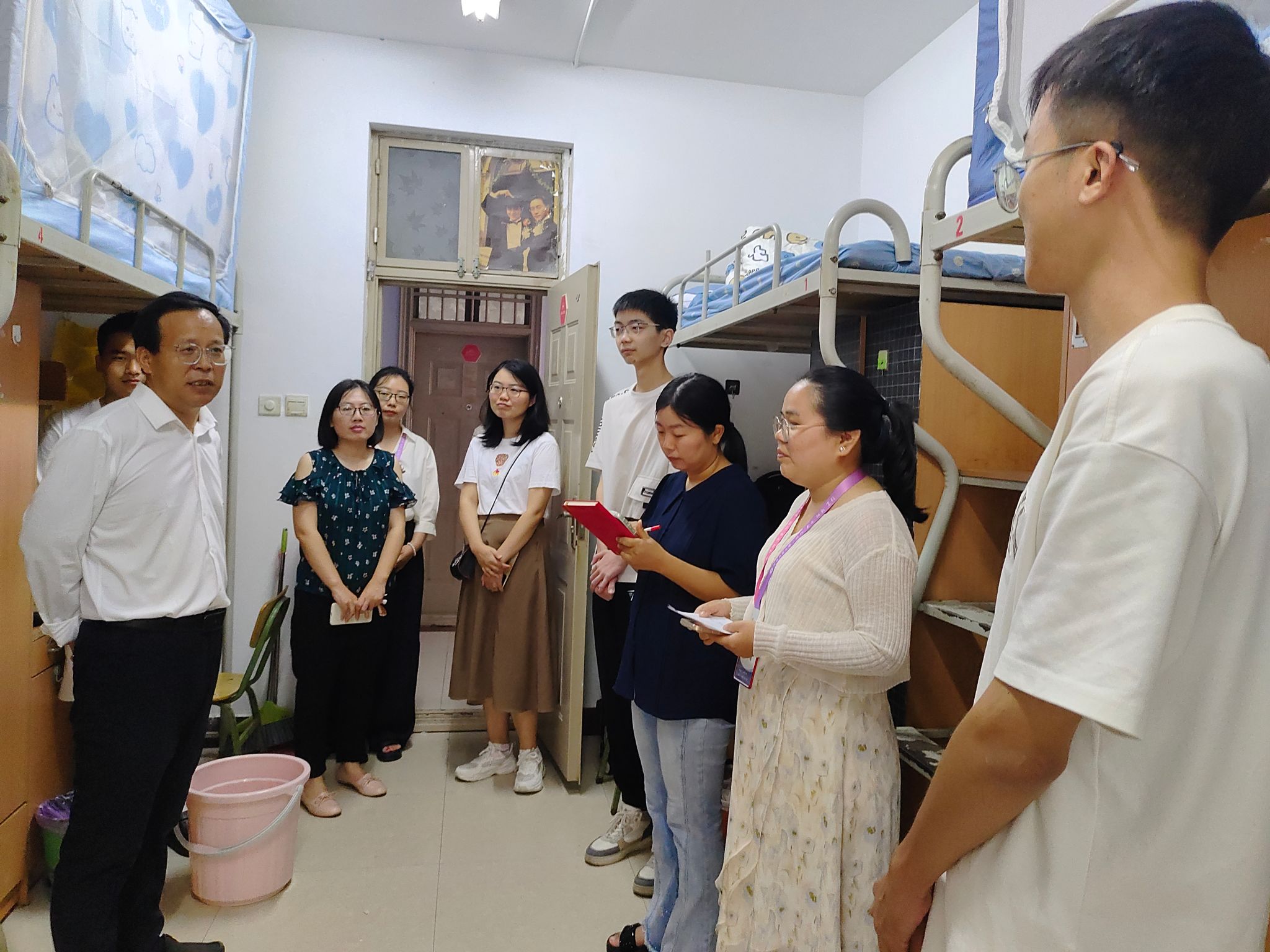 领导关怀温暖人心。新生报到当天,亚洲av党委书记卫红伟、副书记蔡永平以及辅导员老师走进学生宿舍看望新生,查看新生的住宿条件,了解新生入校后的状态,卫红伟鼓励新生们要尽快适应大学生活,做好学业规划,并叮嘱大家注意人身安全、财产安全,谨防网络诈骗。同学们表示会努力学习,珍惜美好的大学生活。