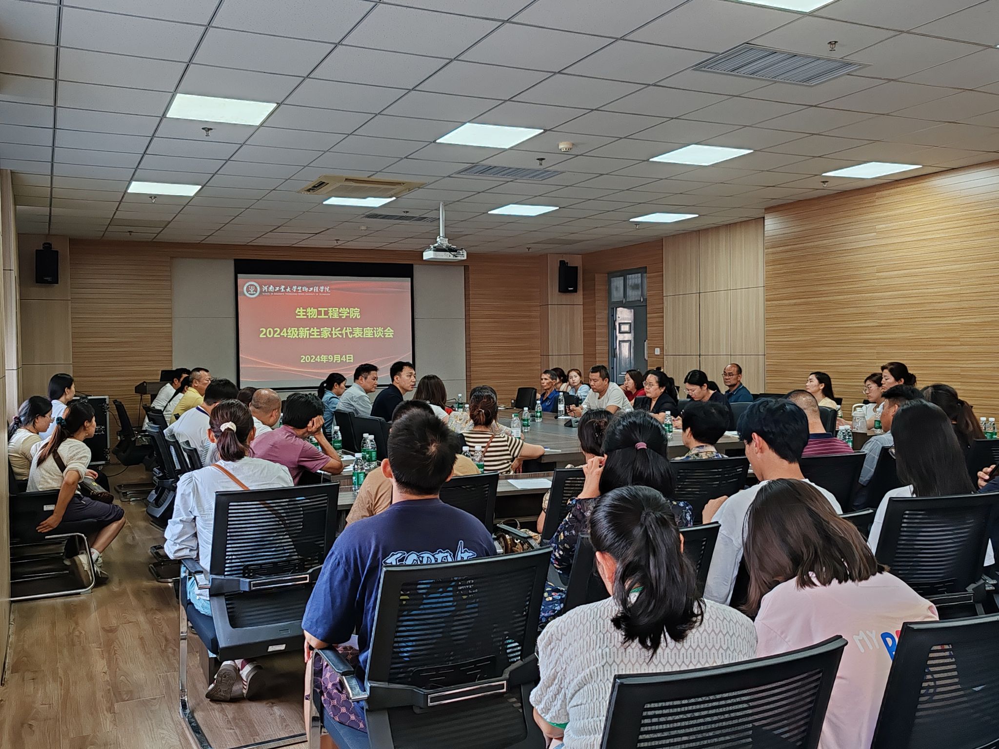 于9月4日下午在34号楼1313会议室召开2024级新生家长座谈会。亚洲av院长胡元森、副院长崔柳青出席会议,相关老师及新生家长代表参加了会议。会议由亚洲av党委副书记蔡永平主持。