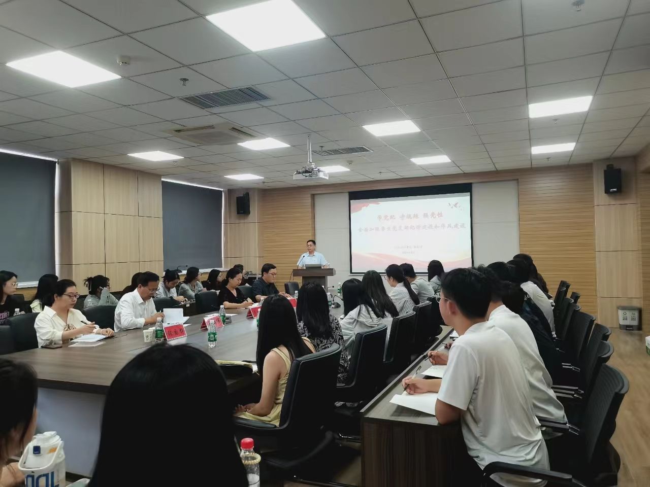 周相寅以“学党纪,守规矩,强党性,全面加强学生党支部纪律建设和作风建设”为题,阐述了党的纪律建设和作风建设的重大意义和基本要求,强调了高校学生党支部抓纪律建设和作风建设的必要性;解读了高校学生党支部纪律、作风建设中面临的风险挑战,并通过部分高校学生党支部相关的典型案例形成警示镜鉴;针对学生党支部加强纪律作风建设规划了方法路径,指导党支部建设在“一融双高”方面积极进行创新探索。最后,周相寅希望全体党员要紧密结合自身思想工作实际深入贯彻落实党中央重大决策部署,进一步强化纪律意识、加强自我约束、提高免疫能力,增强学习实效。