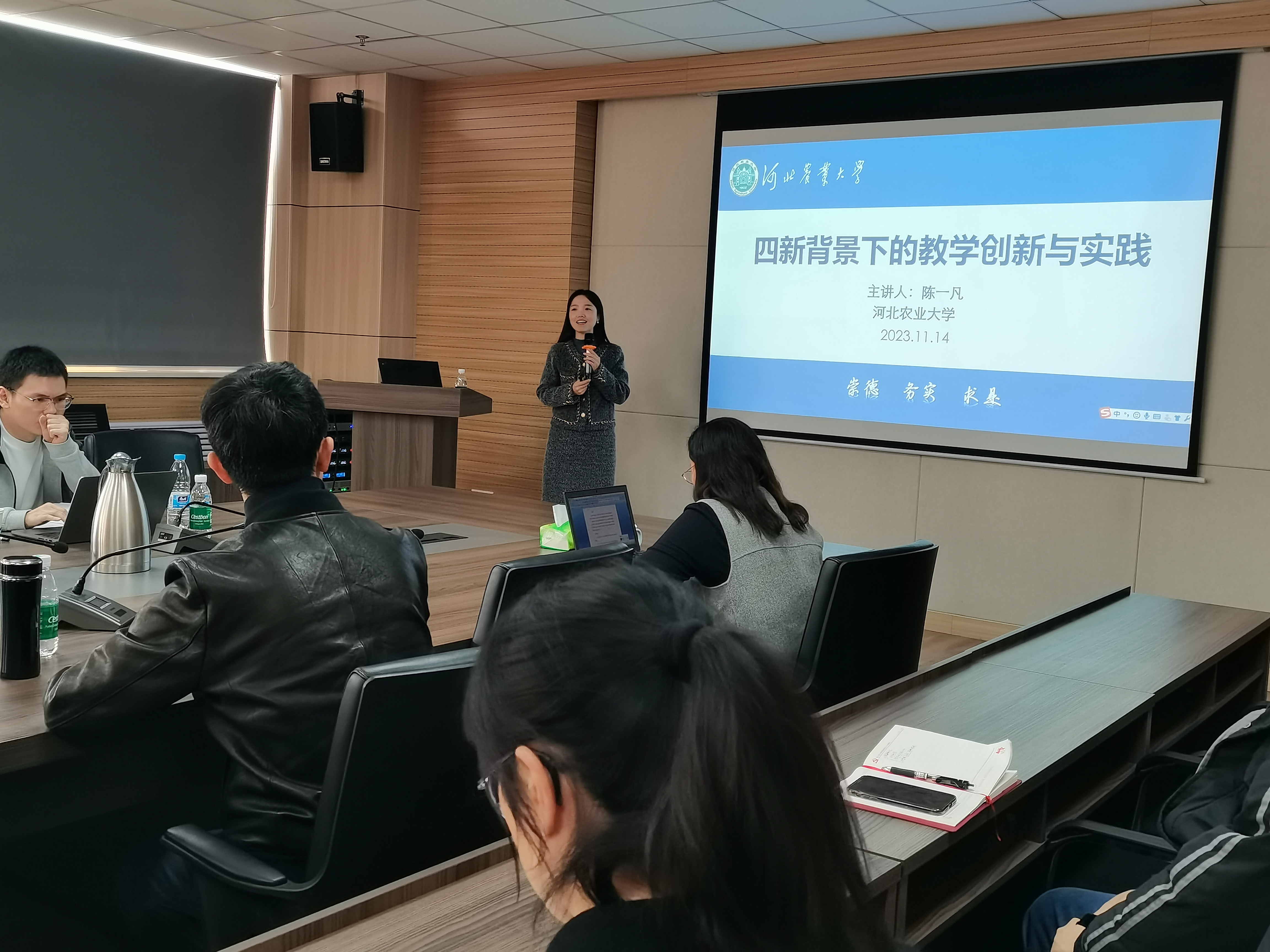 14日下午,陈一凡老师作了题为《四新背景下的教学创新与实践》的报告。她对青年教师如何从课程目标设置、教学内容重构、教学方法创新、教学成效评价、教学资源建设与应用等几个方面指导如何做好课堂教学。她报告中指出,课堂教学设计、授课方式方法、教师与学生亲和互动对提升学生课堂学习效果至关重要。报告会上,与会教师针对授课过程中遇到的问题与两位专家展开了深入交流,普遍表示受益匪浅,深感参加教学研讨,提升教学教研能力的重要性。