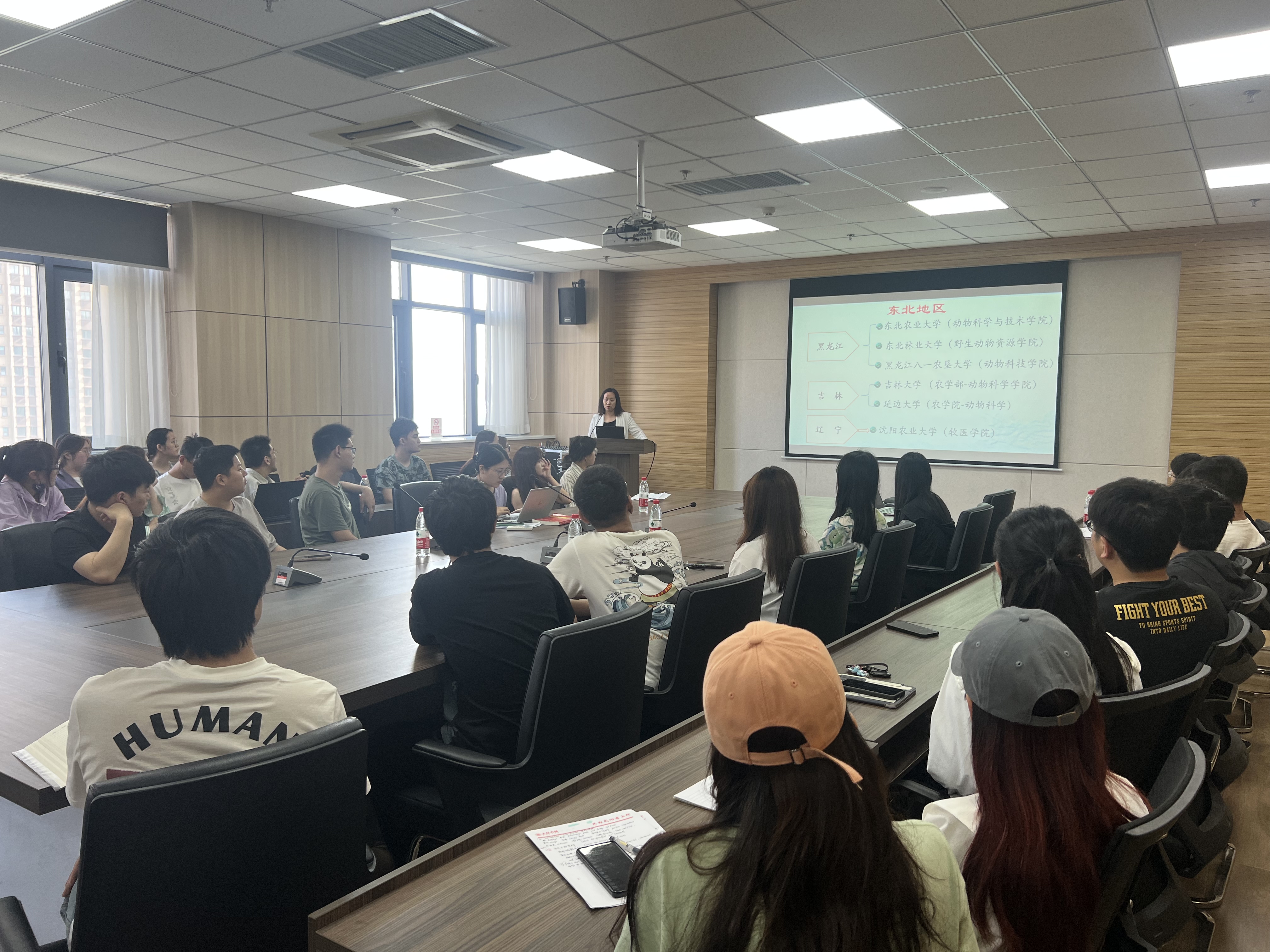 动物科学系于6月6日在34号楼1313会议室召开2020级本科生考研分析交流会。动物科学系系主任王金荣教授、2020级本科班主任和2020级全体本科生参与本次交流会。王金荣教授主持会议。