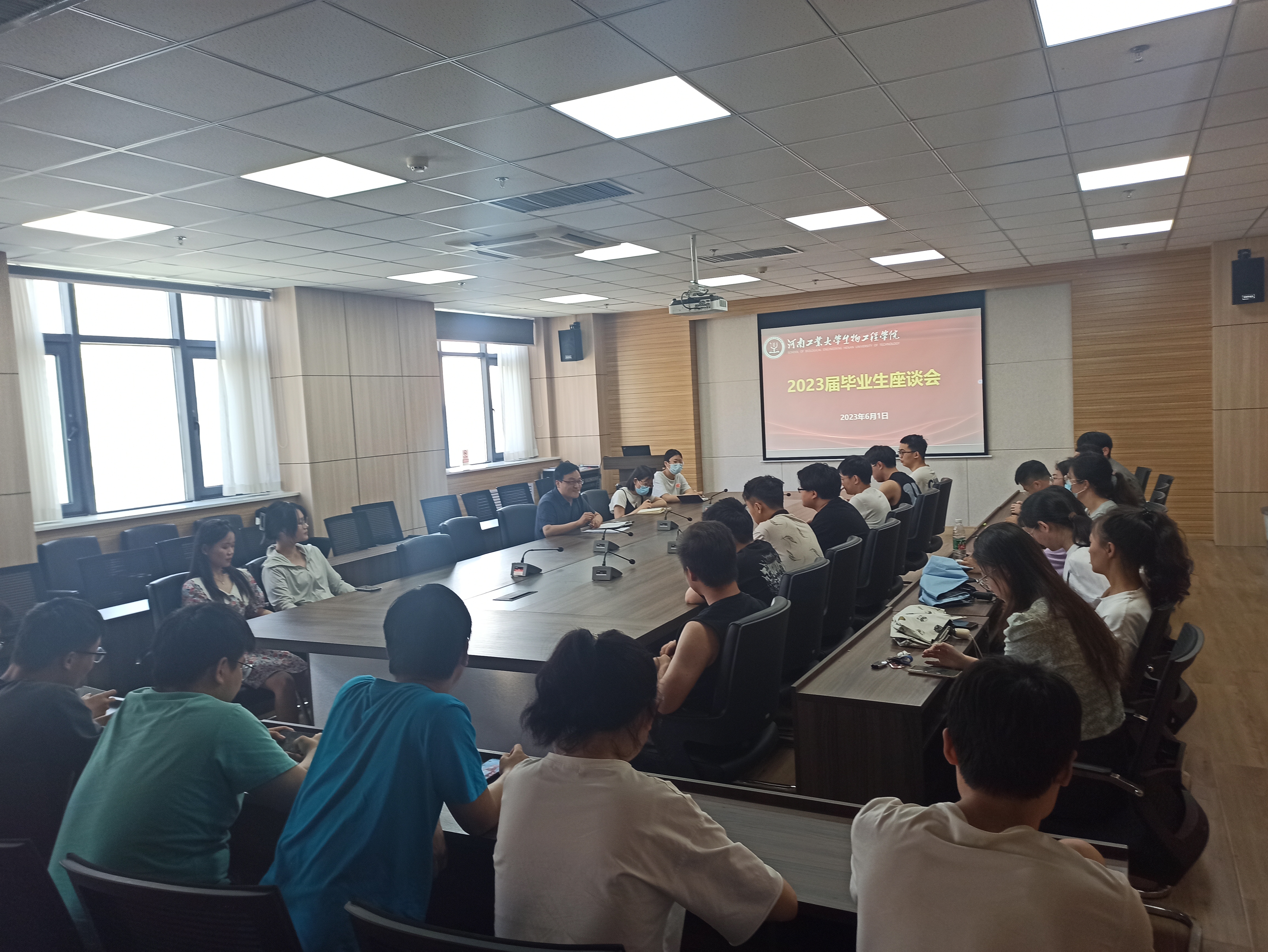 在1313会议室召开毕业生就业创业工作专题座谈会,亚洲av党委副书记余汉华、学工办主任岳媛媛、团委副书记、毕业班辅导员杨雨薇及2023届毕业生代表参加。会议由余汉华主持。