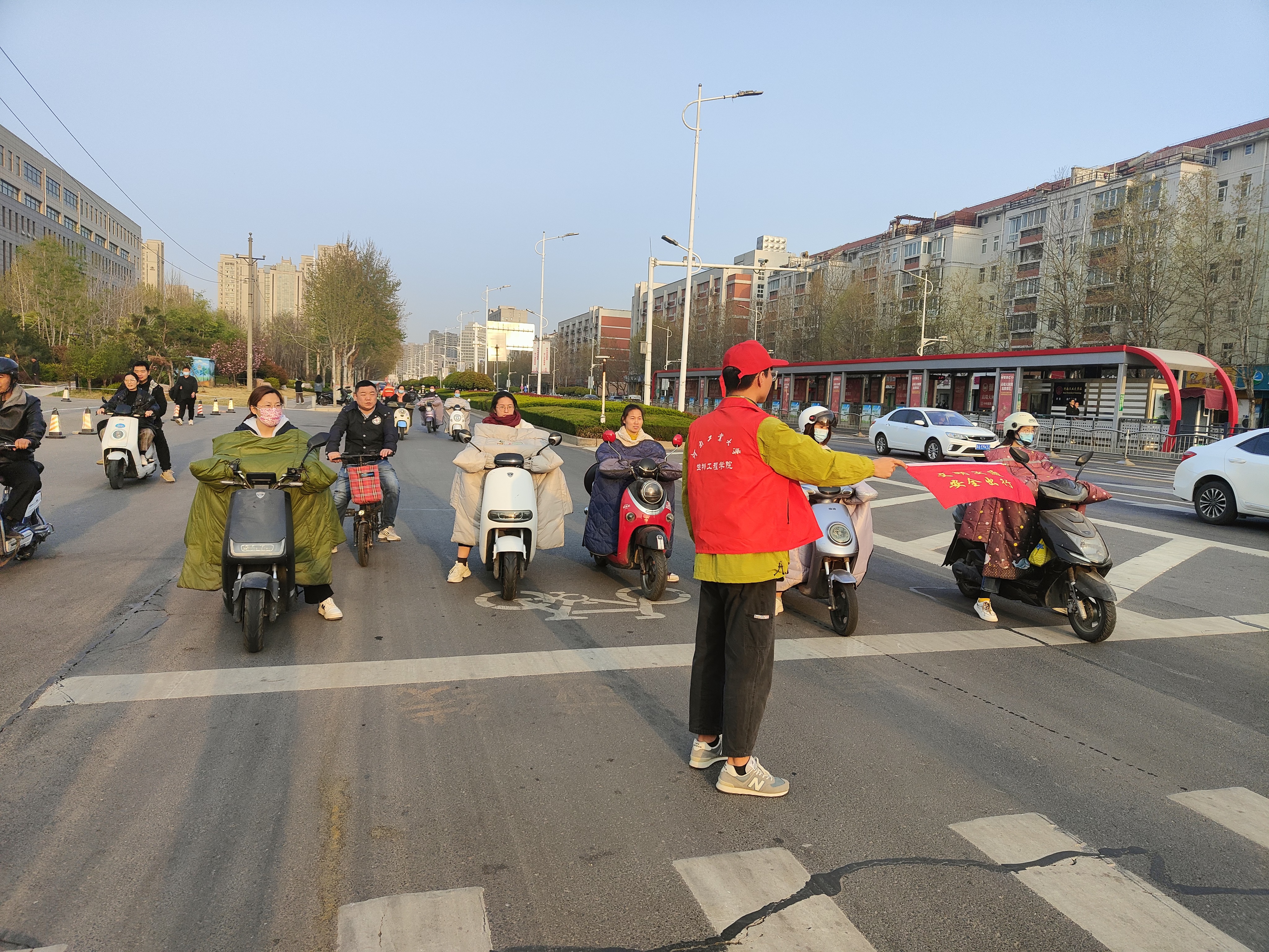的师生志愿者们提前到岗,志愿者们穿戴红马甲和帽子,手持交通劝导旗,在各个路口对闯红灯、不走斑马线、逆向行驶等不文明行为进行劝导。对身体活动不便的老人、放学回家的小学学生,志愿者们热情地提供帮助,确保他们安全通过。他们用热情和微笑倡导着文明出行,传递着“文明交通,从我做起”的正能量,志愿者们坚守岗位,规范执勤,以高度的责任感、昂扬的精神面貌展现了亚洲av师生的良好形象,志愿者们温馨的话语、热情的服务受到了过往行人的纷纷点赞。