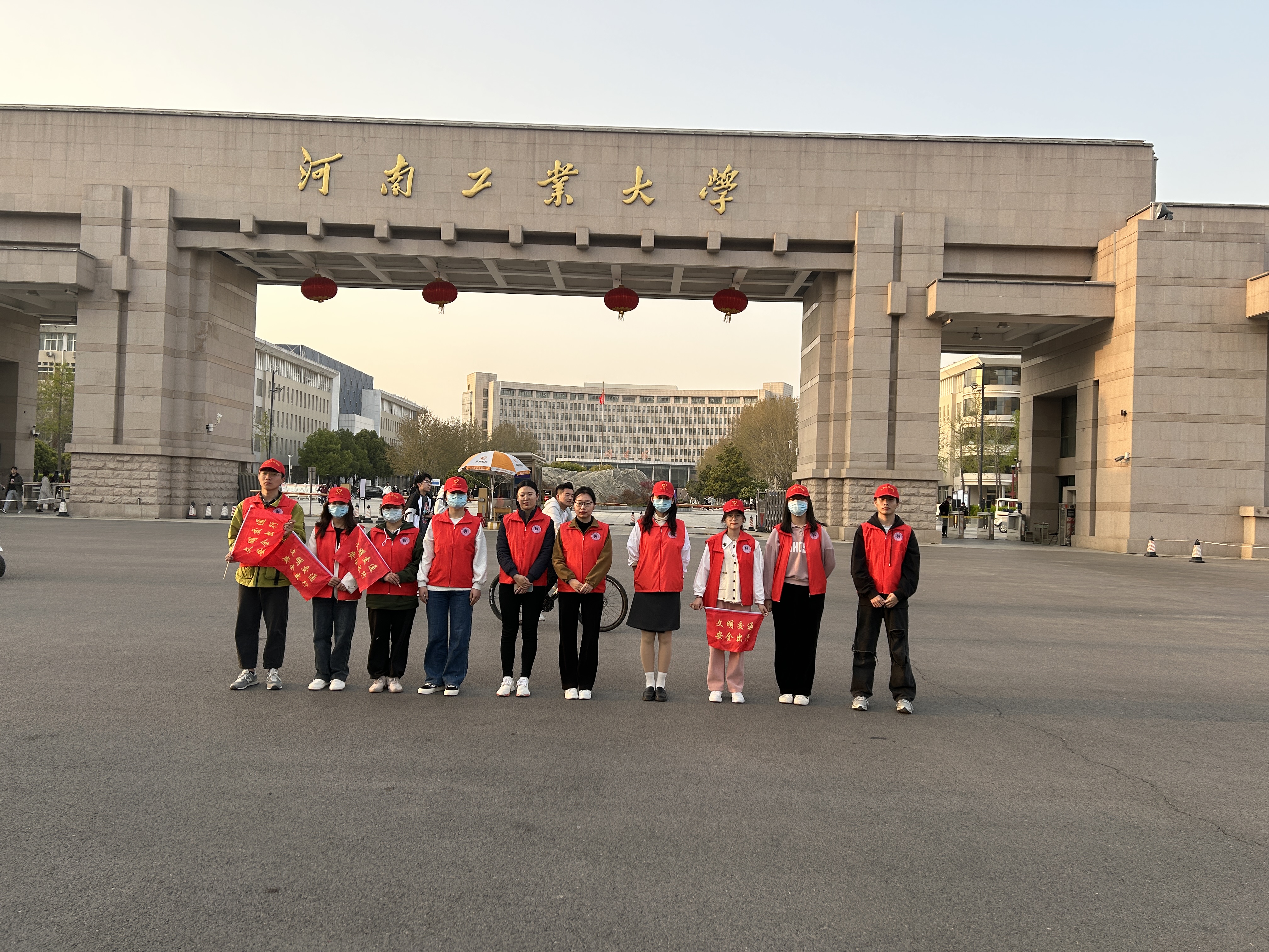 莲花街校区南门口进行文明交通志愿服务活动,宣传安全出行常识,引导行人和非机动车驾驶安全文明出行。