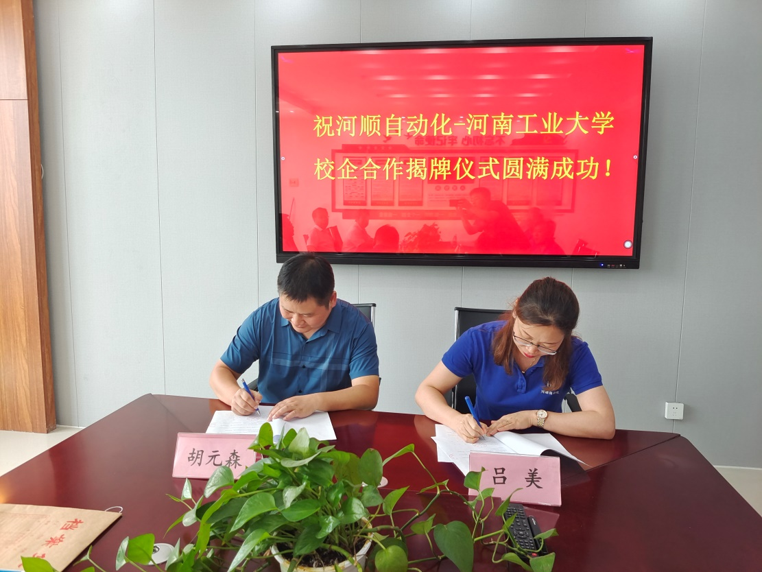 党委书记卫红伟、院长胡元森、国际亚洲av副院长刘来亭等一行到河南河顺自动化设备股份有限公司交流考察,并签订产学研合作协议。河南河顺自动化设备股份有限公司董事长刘忠臣、总经理吕美、总工程师史建波、技术部经理宋炎明出席签约仪式。