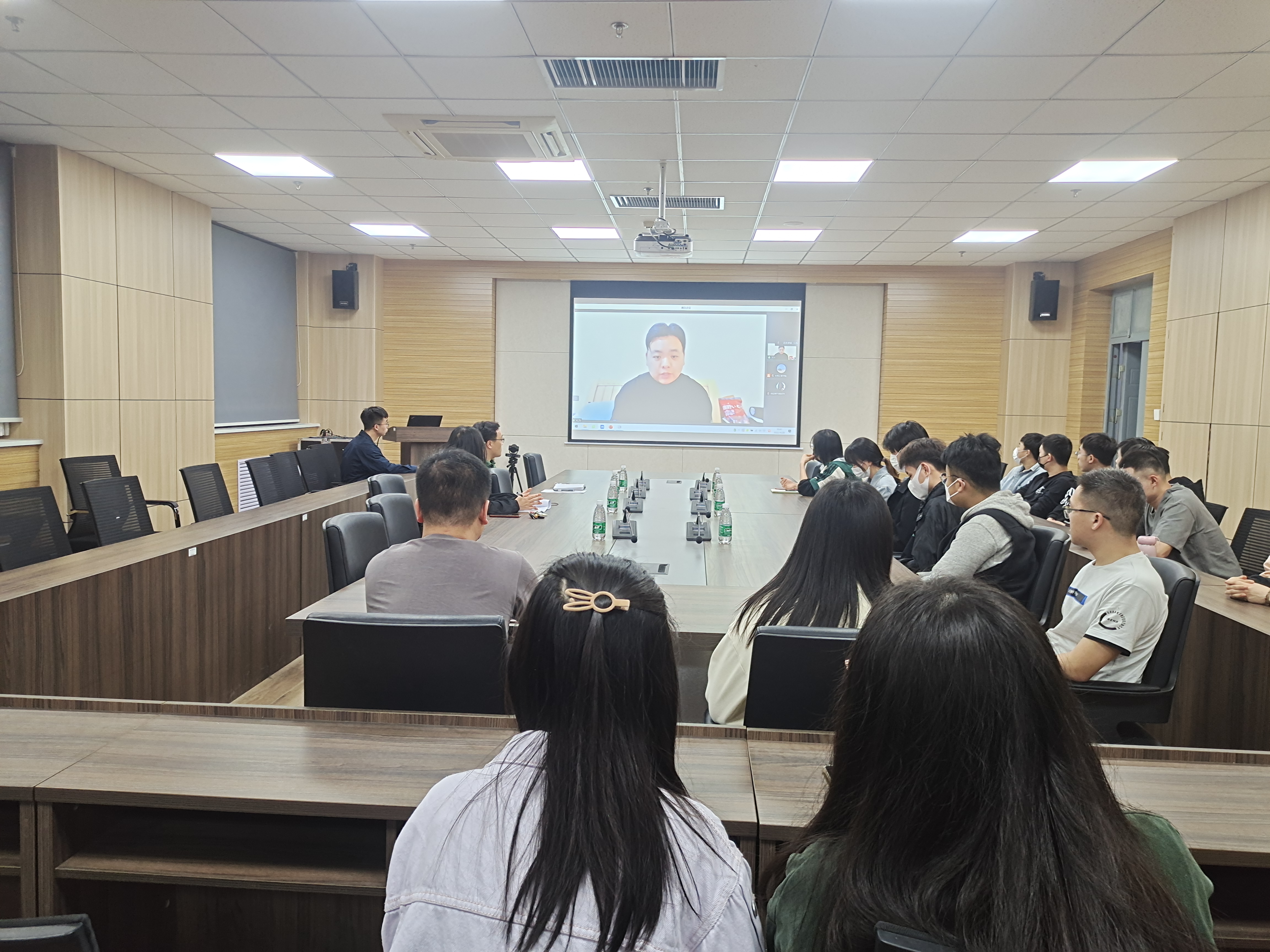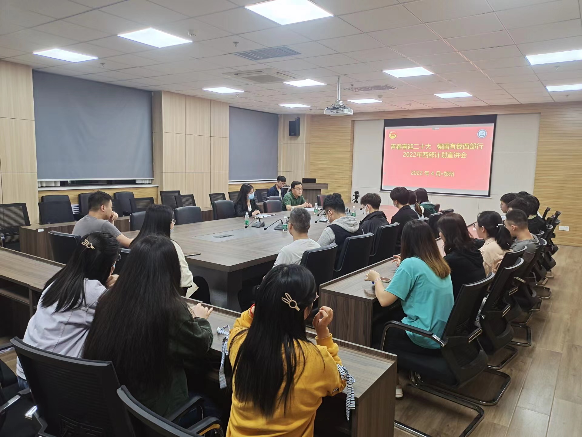 在1313会议室召开西部计划宣讲会。亚洲av党委副书记余汉华、辅导员张国静,亚洲av2020届西部计划志愿者王力、2021届杨雨欣以及毕业生代表参会。会议以线上、线下相结合的方式召开。