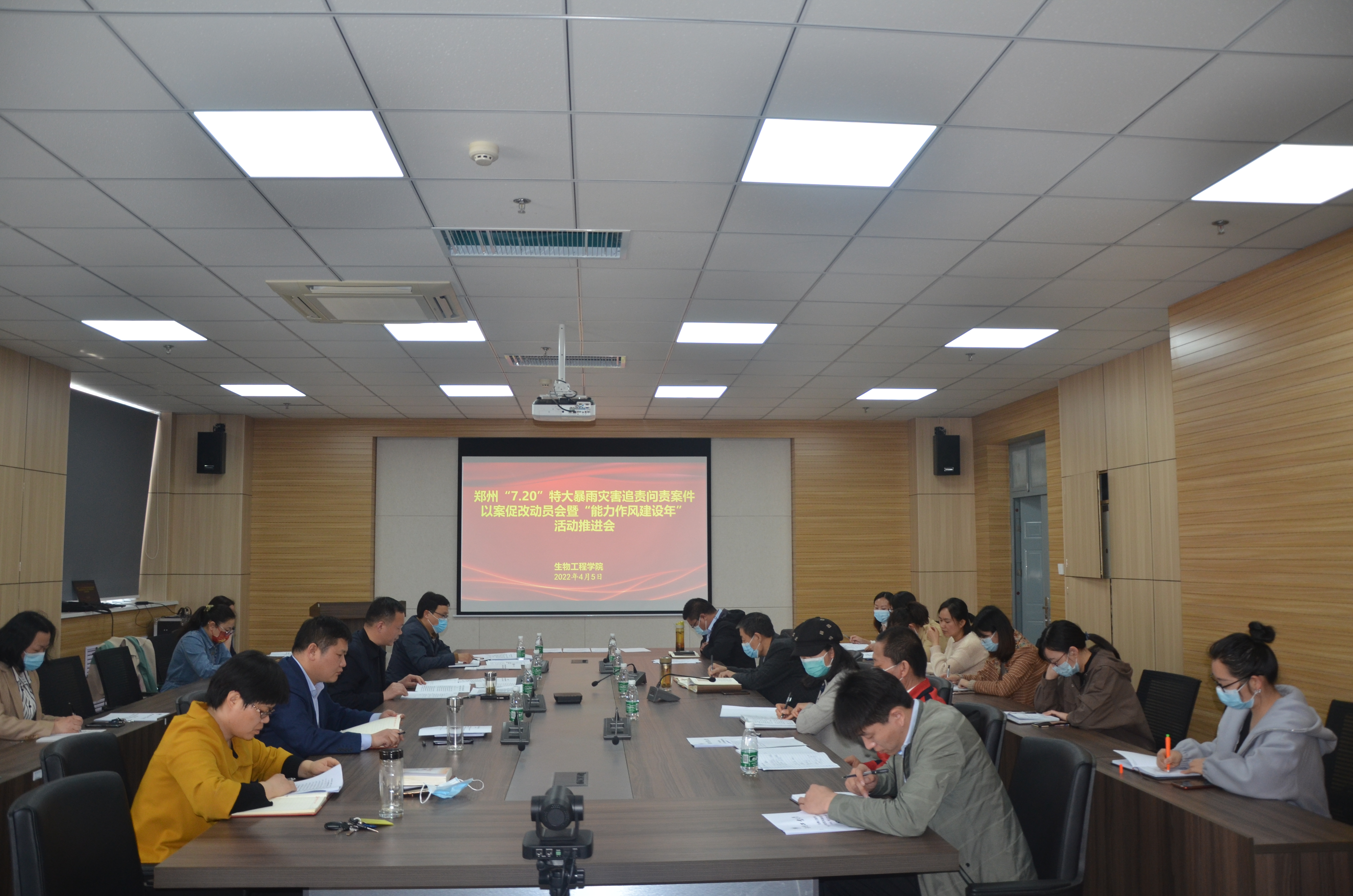 在1313会议室召开郑州“7·20”特大暴雨灾害追责问责案件以案促改暨“能力作风建设年”活动推进会,传达贯彻学校有关会议精神,推进亚洲av以案促改工作和能力作风建设,开展典型案例警示教育。亚洲av全体班子成员、系室负责人、支部书记、辅导员参加了会议,全体教职工通过腾讯会议线上同步参会。会议由院党委书记李继周主持。