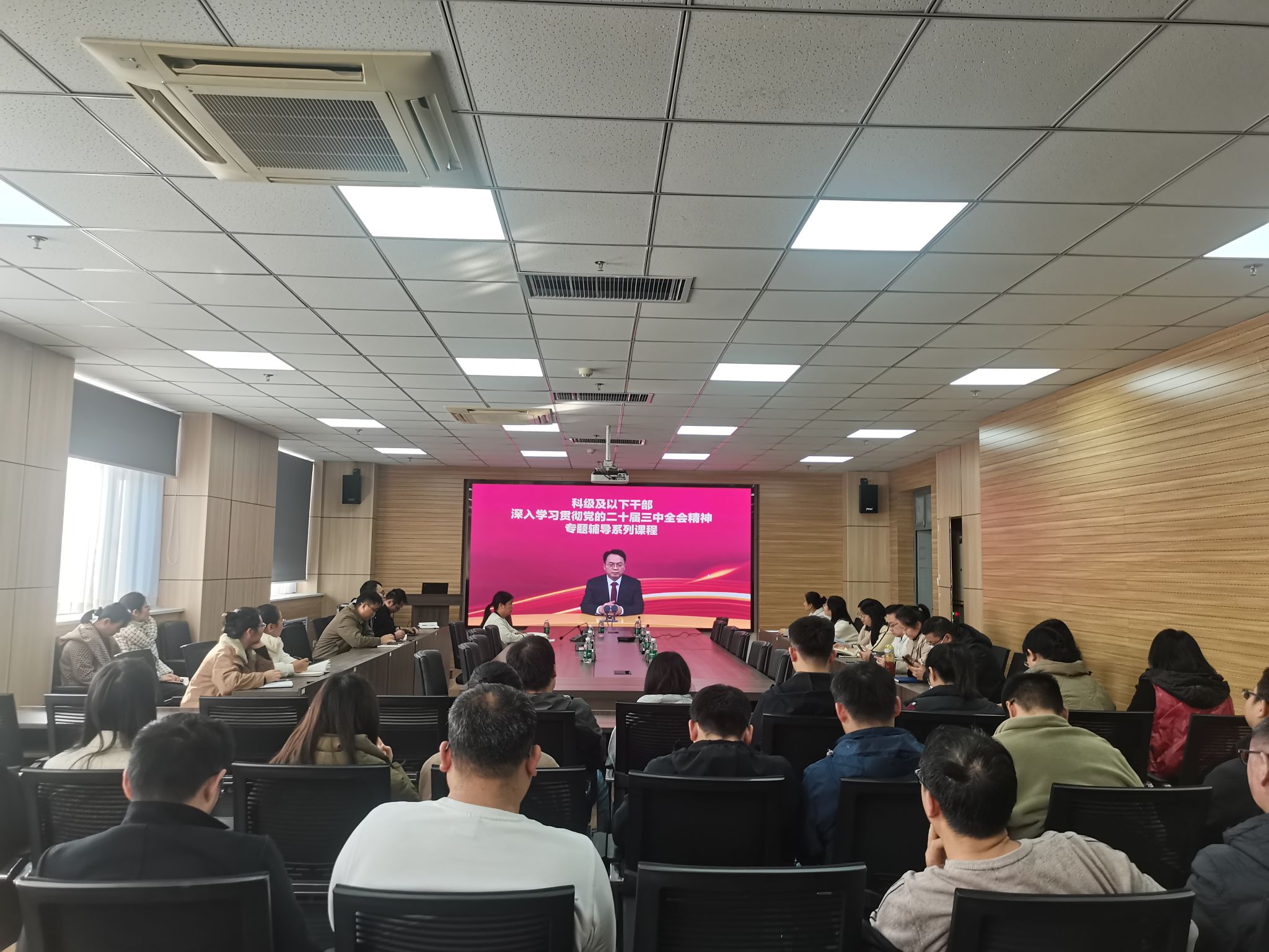 在惟德楼1313会议室组织开展科级及以下干部、党员学习贯彻党的二十届三中全会精神专题培训。亚洲av科级及以下干部、党员参加培训会。