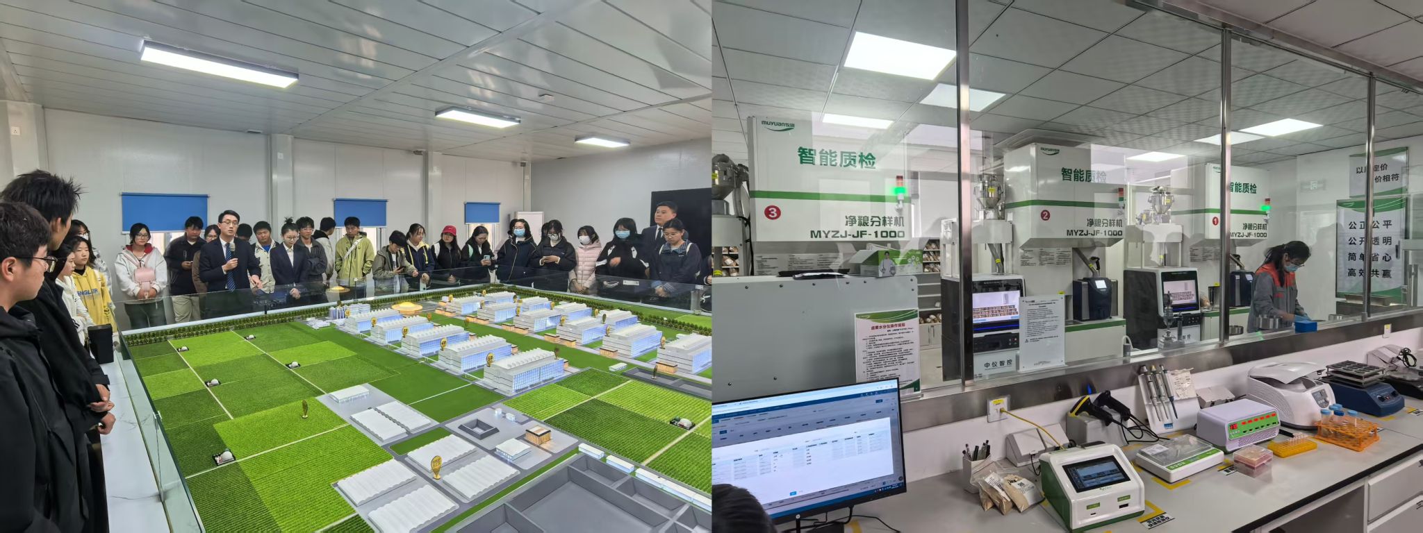 随后,师生走进西湖牧原实验室,深入了解无豆日粮技术、生物合成原料研发以及养殖废弃物资源化利用等研究工作。实验室的前沿探索,使学生认识到饲料工程不仅是工艺实现,更是融合生命科学、工程技术、信息科学等多学科交叉的科研高地,是推动畜牧业可持续发展、保障国家粮食安全的关键支撑。