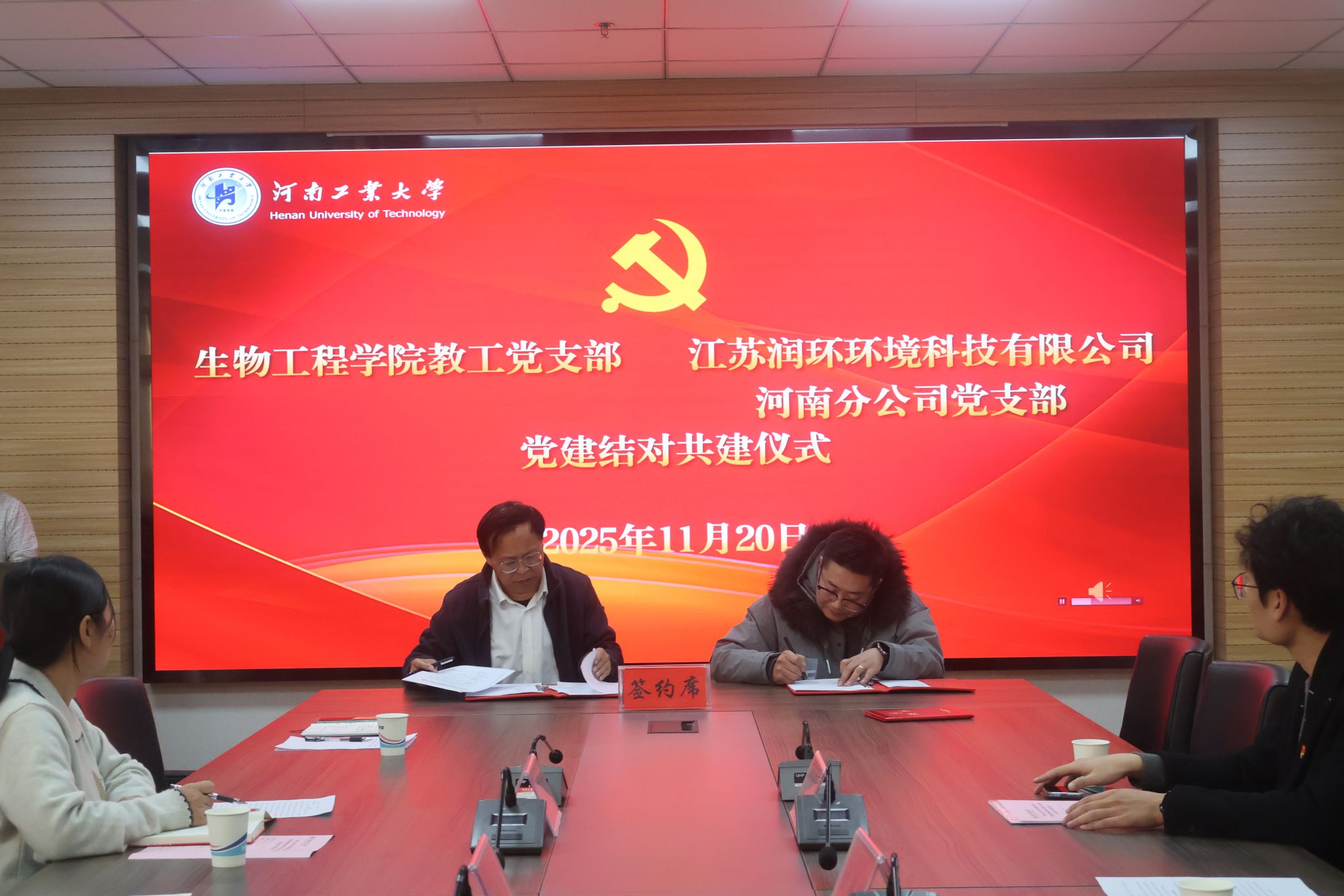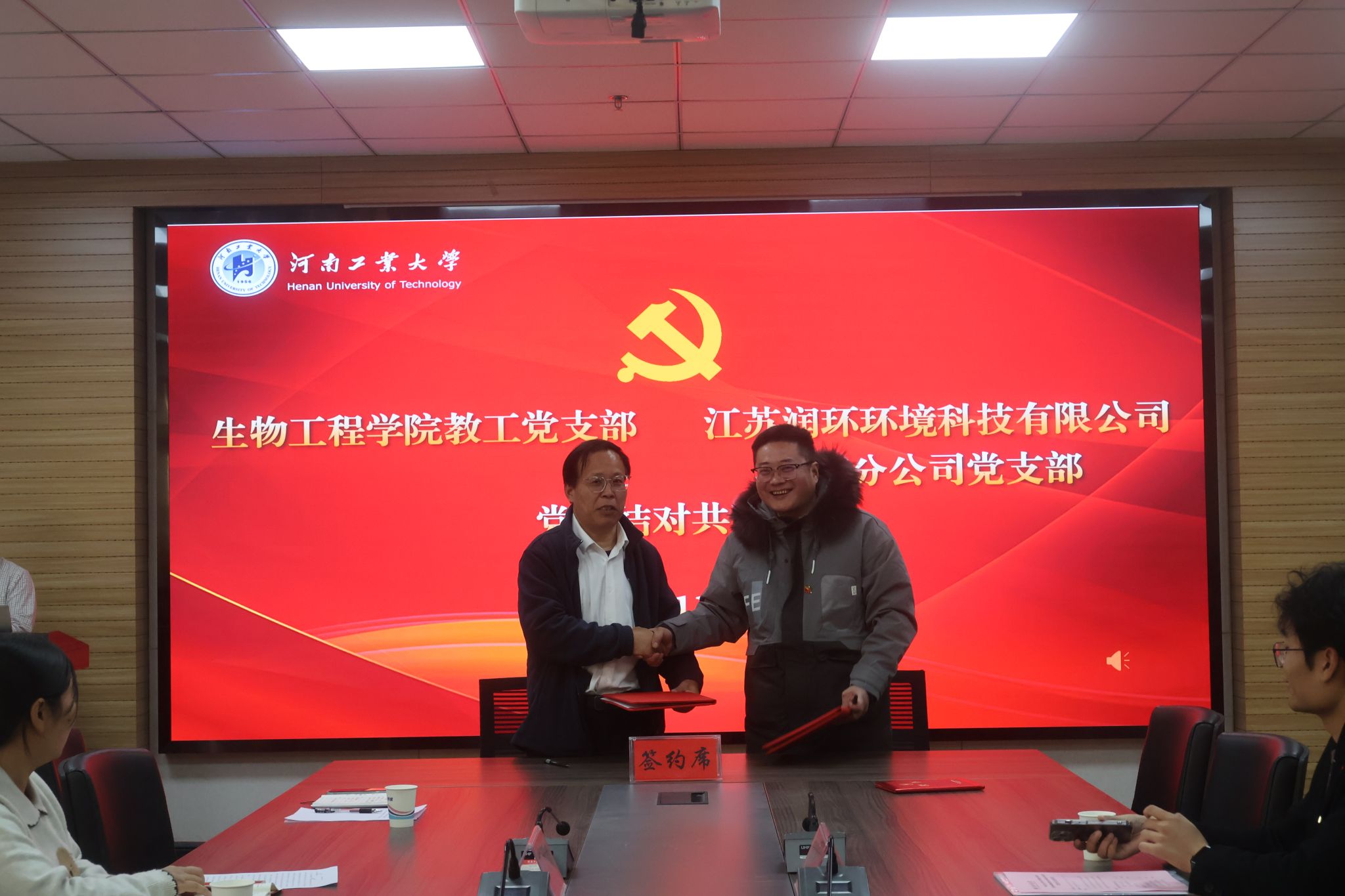 教工党支部与江苏润环环境科技有限公司河南分公司党支部在惟德楼1313会议室举行结对共建签约仪式。我校生工2001级校友、江苏润环环境科技有限公司河南分公司总经理刘从彬,亚洲av