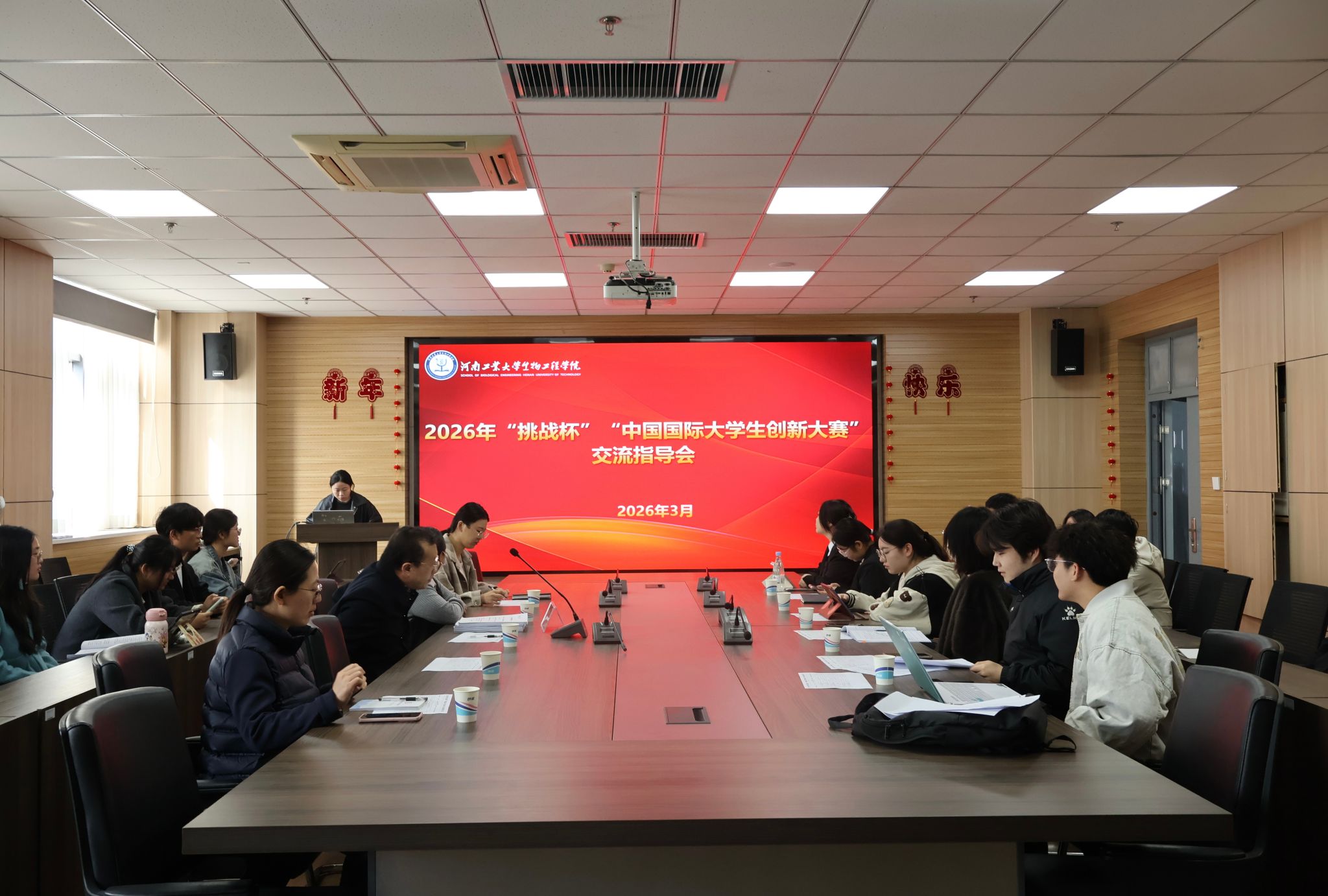 在惟德楼1313会议室召开“挑战杯”和“中国国际大学生创新大赛”交流指导会。会议特邀河南科技大学许军教授作专题分享与现场指导,亚洲av党委书记卫红伟、副书记蔡永平,指导教师代表及各项目负责人参加会议。