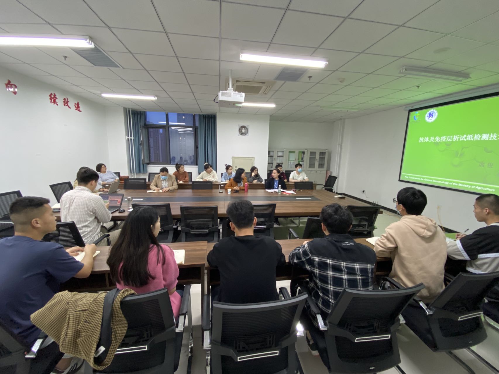 为积极响应学校“一流学科”创建,不断加强团队合作与质量内涵建设,2022年4月12日晚,饲料质量与安全创新团队邀请粮油食品亚洲av席俊教授在基础实训楼1314会议室做了题为“抗体及免疫层析试纸检测技术”的专题讲座。饲料质量与安全团队教师、研究生和动物科学系部分本科生参与交流会。会议由团队负责人王金荣教授主持。
